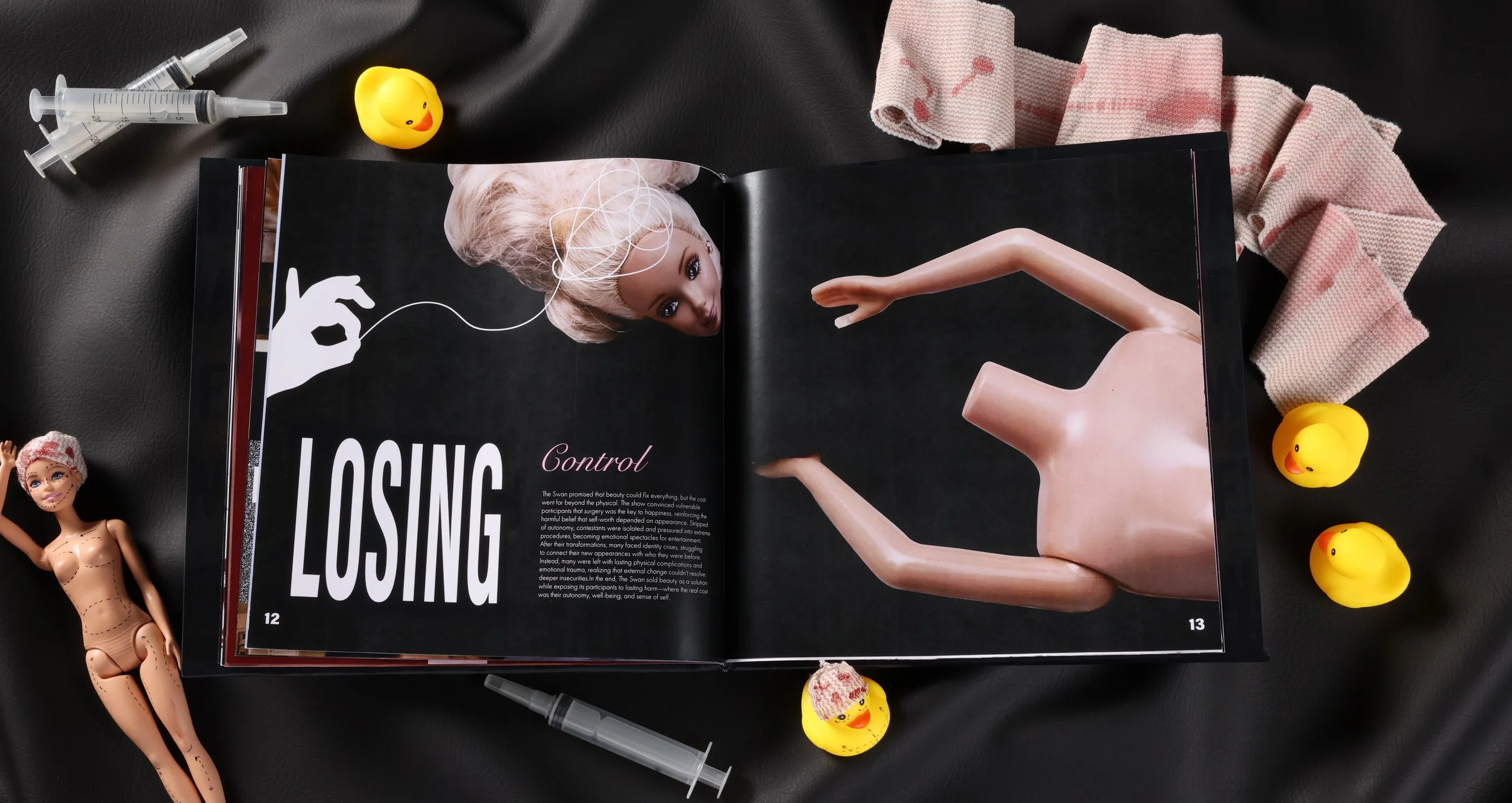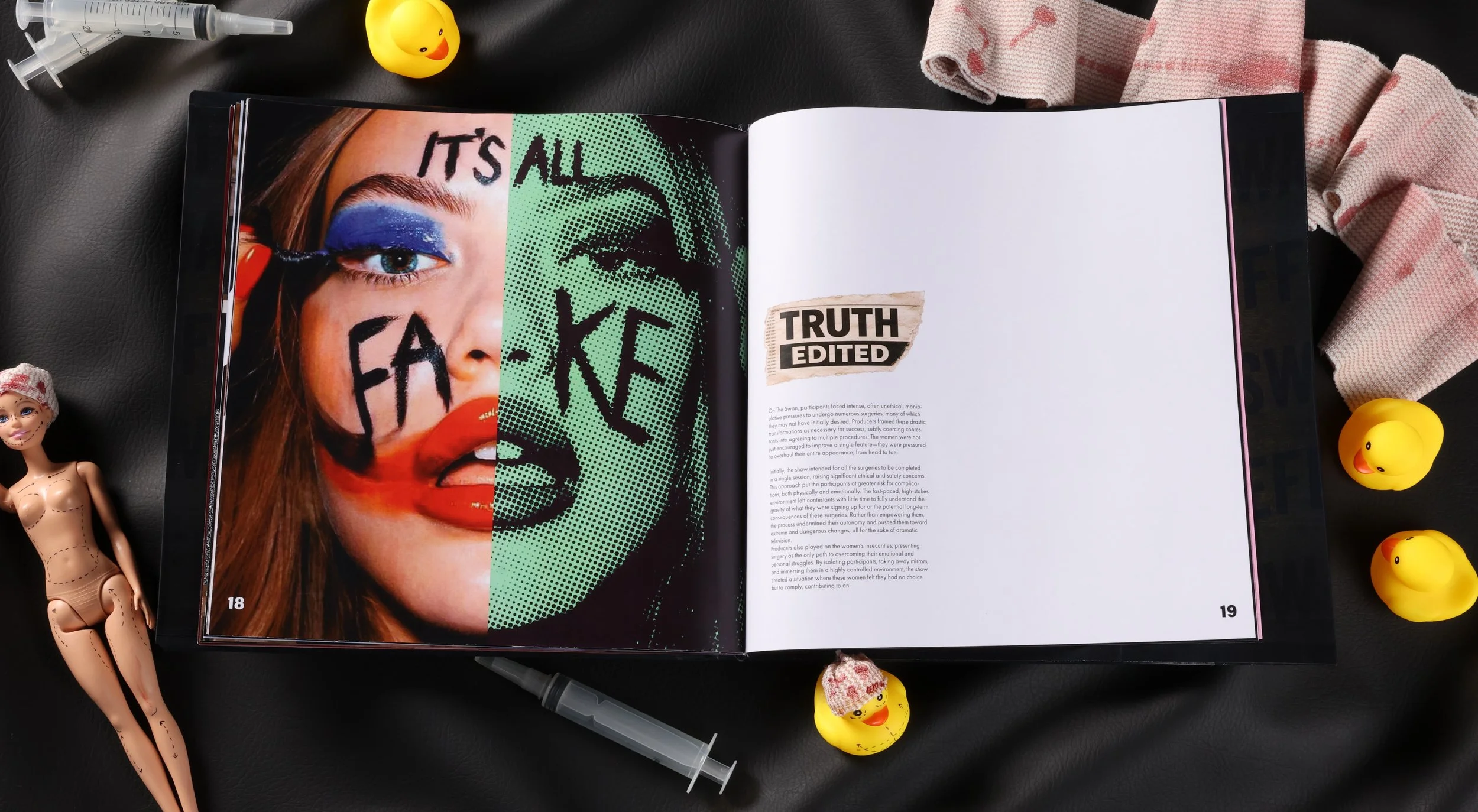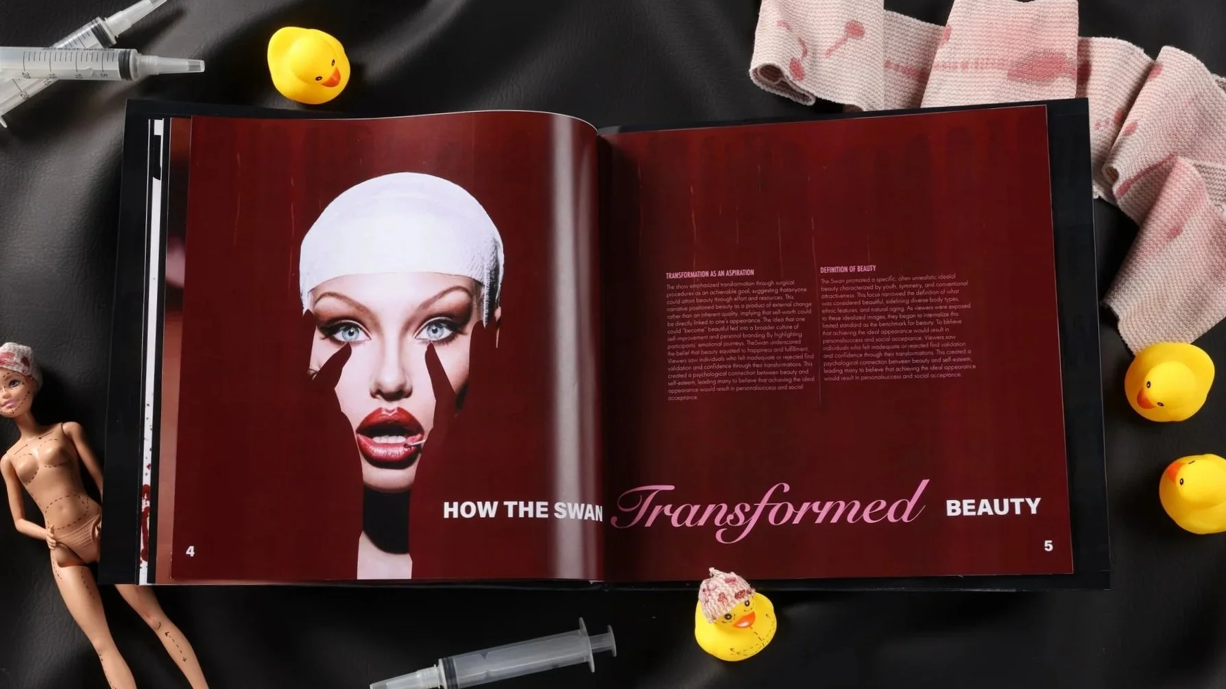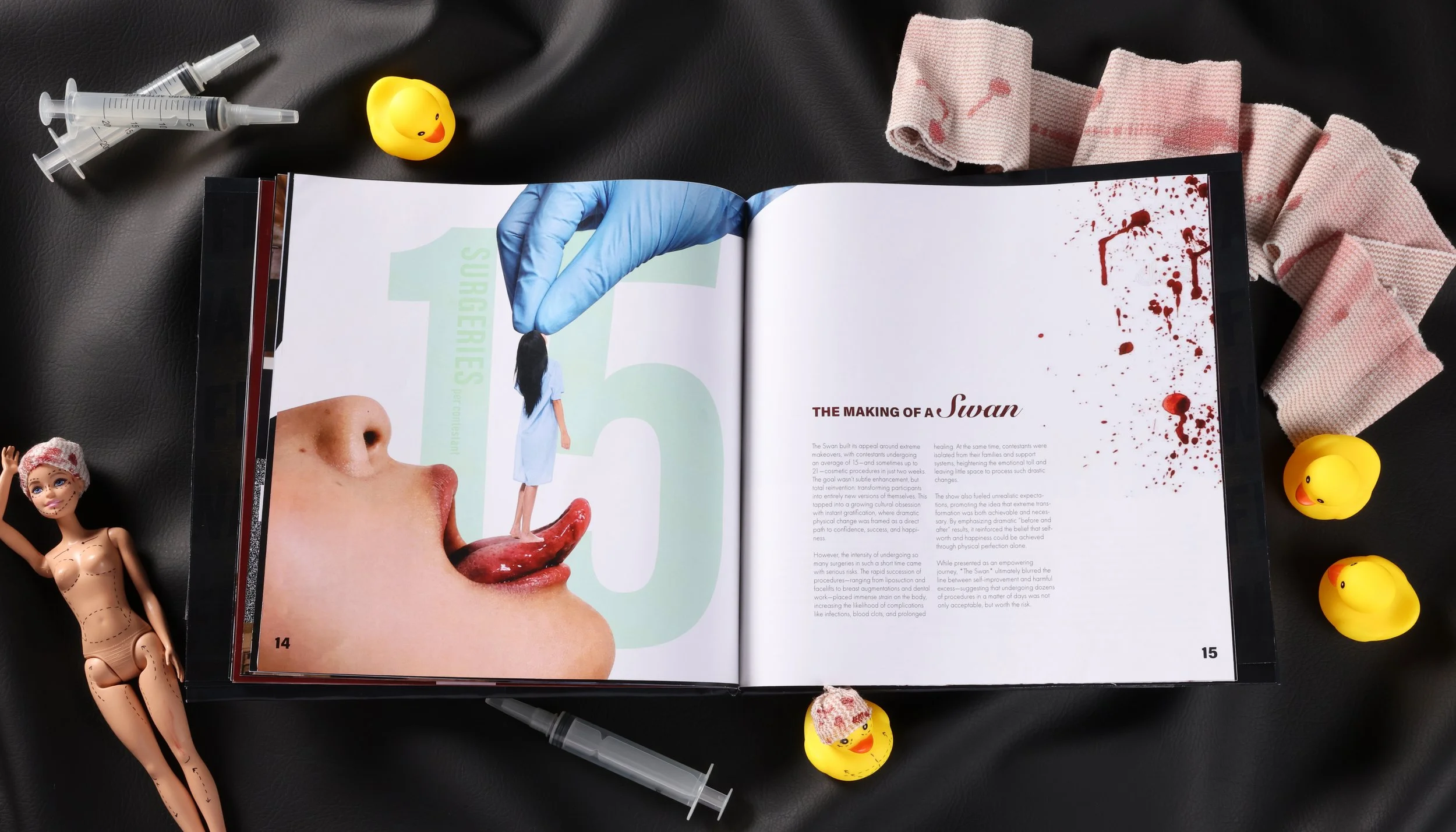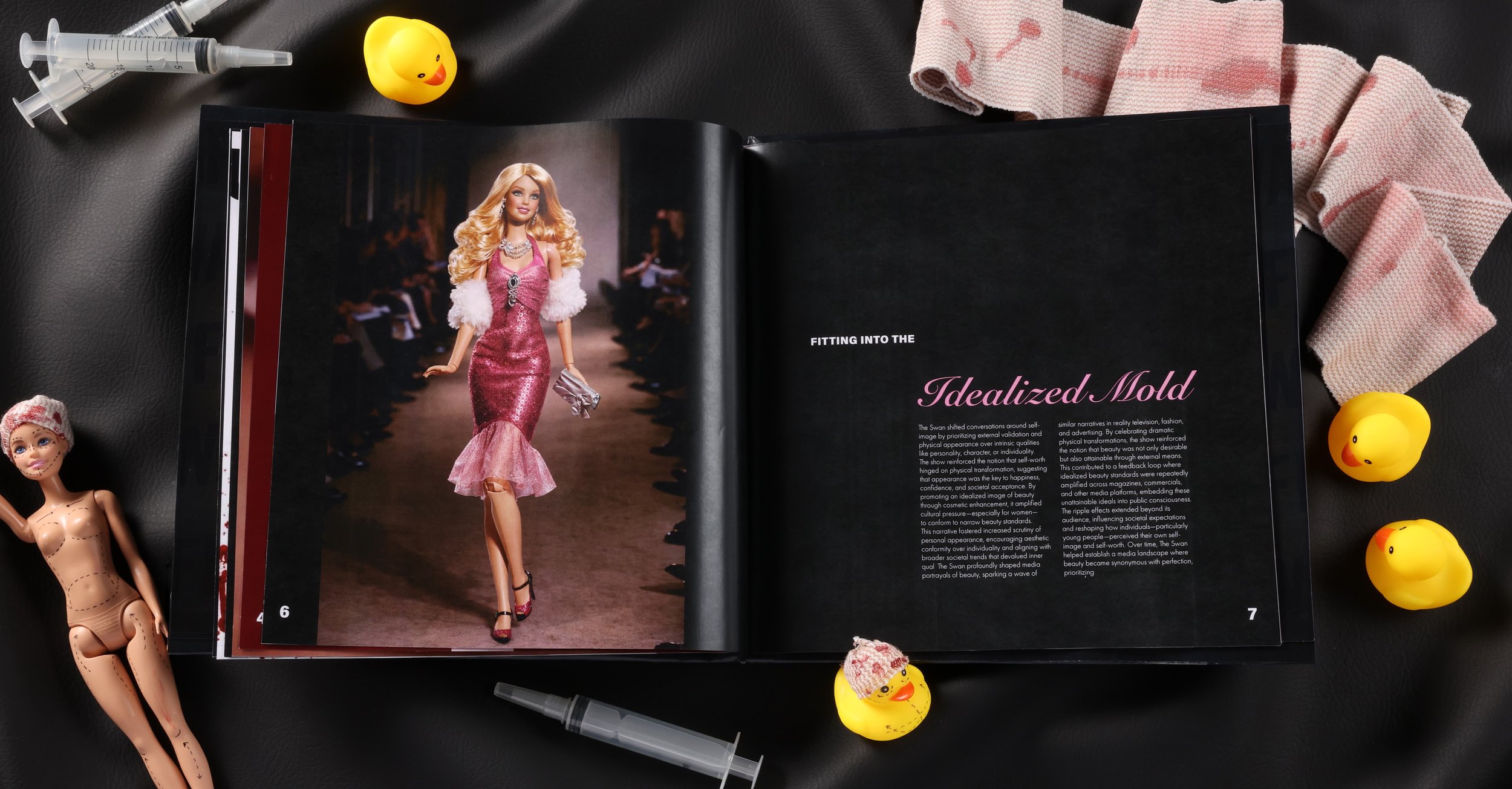 Reality television has long shaped cultural beauty standards, often without questioning the consequences. The Swan, an early 2000s makeover show, promoted extreme cosmetic transformations as the path to self-worth. The challenge was to create a publication that critically examines and exposes the ethical and cultural impact of the show.